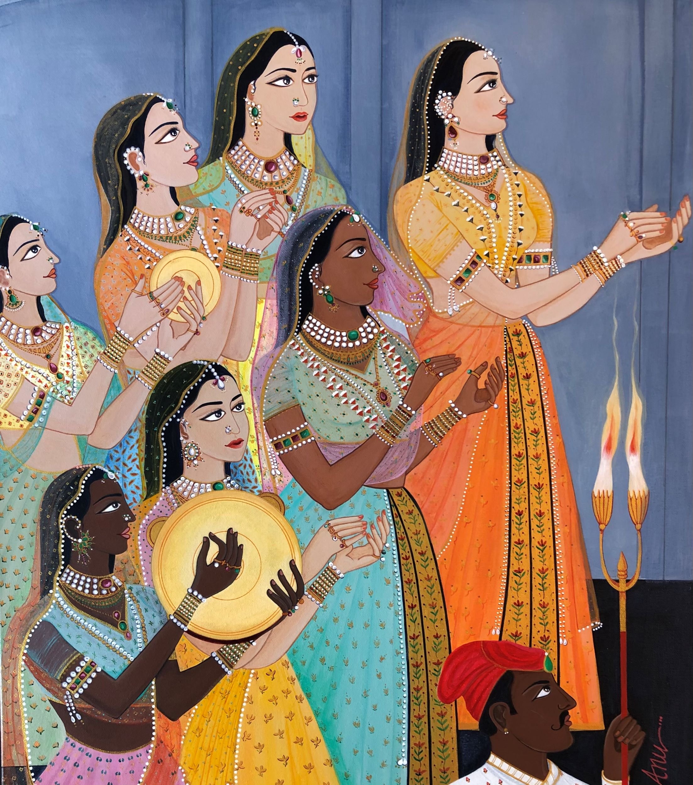 My Art is deeply inspired by the rich history and tradition of Indian miniature painting. I strive to honor this art form while exploring new ways to interpret its techniques and motifs. Through my art, I hope to evoke a sense of wonder and curiosity in the viewer, as well as a connection to the cultural heritage that inspired it. I invite the viewer to step into a world that is both familiar and exotic, ancient and modern with a "Then" & “Now" Twist. Fulfillment comes from knowing my art sparked a response, creating an invisible bond with the observer. My work has intricate details, vibrant colours, I use a variety of materials, techniques, including acrylic paints, gouache, gold leaf, and fine brushes to create a jewel like appearance.