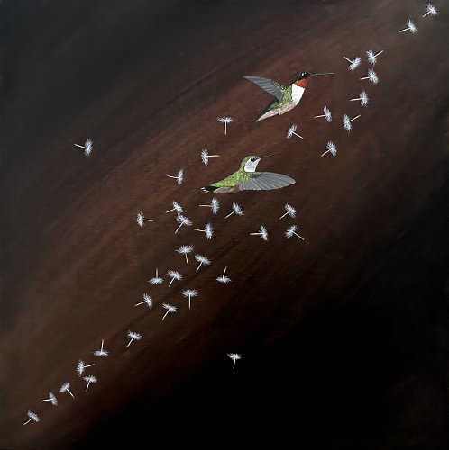 Arwynn is a fine art painter using rich, layered colours, and fine details. Her work is a collection of joyful, detailed paintings of simple motifs such as dandelion wishes, nature scenes and wildlife. These works strive to capture the feelings of optimism, hope, whimsy and pure joy.