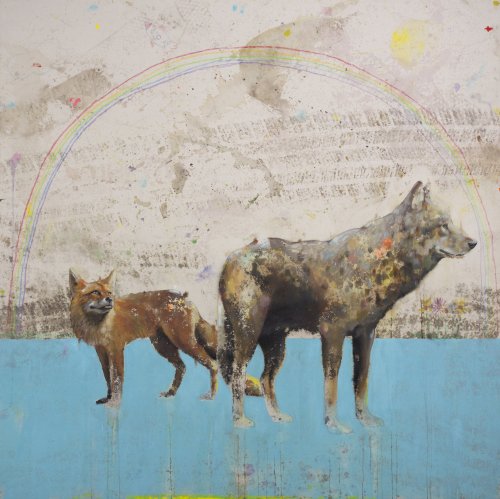 Daniel's artistry reflects a mastery of combining natural and urban elements, resulting in a distinctive language that is both visually striking and deeply thought-provoking. Hailing from Eastern-townships, Melbourne, Quebec, Daniel's background in Fine Arts is apparent in his work, where he employs a diverse range of mixed media, including mosses, dried flowers, sticks, stones, and crushed cement, to create mesmerizing textures and depth in his pieces. He attributes his visual language from his time at NSCAD studying under Gerald Ferguson a renowned Contemporary Canadian artist. His art speaks to the viewer in a unique dialect, where realistically rendered creatures interact with urban elements, such as graffiti and tire tracks, in a way that captures the uneasy relationship between urbanization and the natural world. His paintings create a new vocabulary of wildlife, not merely depicted, but embodied in a language that is both poetic and poignant. Through his use of color and composition, Daniel transforms his canvases into windows into worlds that are both beautiful and ominous. His works evoke emotions ranging from awe and wonder to a sense of foreboding, as if the creatures he depicts are the last remnants of a world in the process of disappearing. In short, Daniel's art is a masterful testament to the power of visual storytelling, conveying complex ideas and emotions in a language that is universal and timeless.