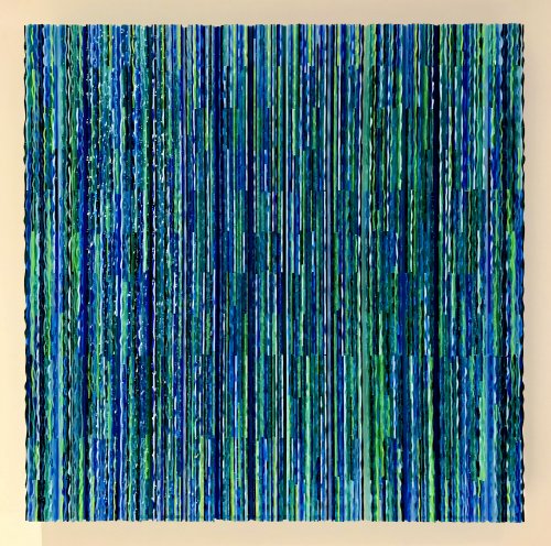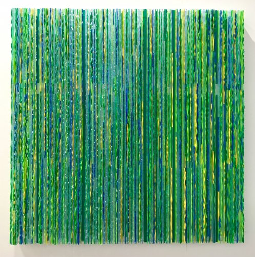 Toronto artist Dori Vanderheyden discovered and became fascinated with the properties of light-emitting fluorescent plexiglass while earning her MFA at OCADU. “I decided to do an MFA later in my career to shake up my practice as a painter, now I paint with plastic and light.” Vanderheyden uses small strips of laser-cut plexi on their edge, to create abstract wall sculptures filled with movement, light, and colour. Her work explores the ever-changing relationships and interactions between light and colour in space. They offer the viewer a direct and visceral experience, that evokes a rhythmic dance of colour.