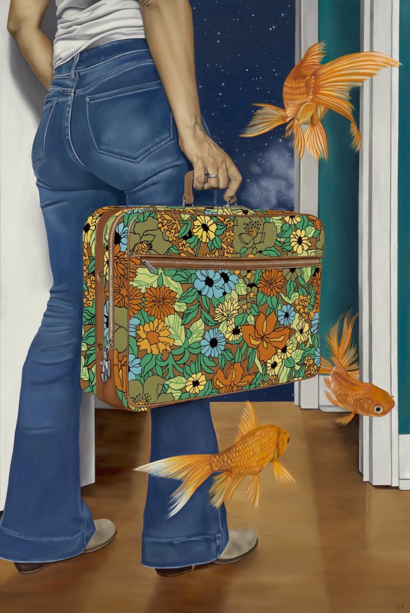 Emily Andrews is an artist and musician based in Niagara Falls, Canada. She works in a variety of media, including oil painting, collage, and installation art. Rooted in surrealism, her work features a subtle absurdity and is influenced by moments of the past and the unconscious mind, operating in the space between memory and imagination. Through references to outdated technology, lost eras, and liminal spaces, Emily’s work centres around the psychology of anemoia, which refers to a nostalgia for a time or place that one has never experienced. Her work has been shown in many group and solo exhibitions and can be found in both private and public collections. Emily is a self-taught artist with a BA in Visual Arts from Brock University and has taught in the visual arts departments at Niagara College and Brock University.