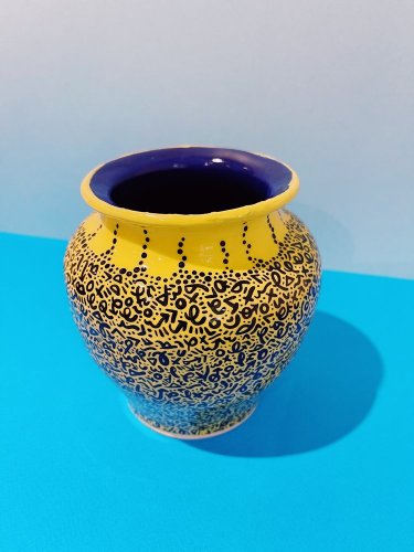 Fiona Clark is a New Jersey based artist who specializes in bright, bold, colorful abstracts that spark joy. Whether that is through ceramics, paintings or public art. Fiona began her signature style of drawings in 2001, as a way to accompany lettering she was exploring at the time. Over the years, she has developed lines, colors and forms as a means to express herself and interpret the world around her. She graduated cum laude in 2007 from the University of Hartford Art School with a BFA concentration in Visual Communication Design, minors in Photography and Art History. She moved to New York City post graduation to pursue a career in graphic design and worked as a digital art director in the fashion industry for 10 years before deciding to pursue art full-time. Fiona moved back to New Jersey in 2020 and now creates out of her home studio. You can see her daily artist life on instagram at fionac.nyc Or on YouTube at Fiona C Art