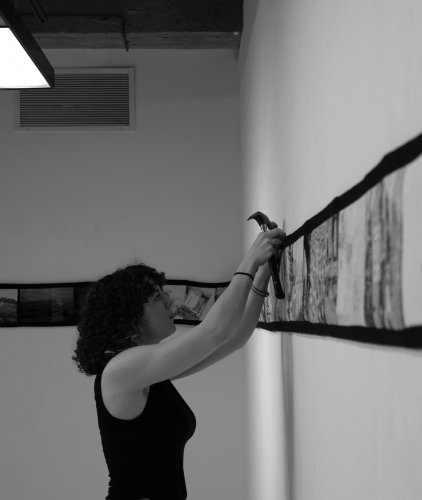 Gabrielle Lacoste is a Chilean-Belgian artist who uses textile processes including weaving, knitting, embroidery and sewing, to materially translate shared cultural philosophies of making as an act of resistance. her approach is deeply rooted in her Chilean identity and relationship to political textile arts. The recent loss of her Chilean legal status has fueled a deep questioning regarding sense of belonging, theories of cultural identity and how the system of citizenship was created by and reproduces patterns of colonization, racial capitalism and imperialism. She considers her work to be a tool, not only focused on the outcome and the message it carries, but also what happens during the making. She uses repetitive and labour-intensive techniques to create a physical and mental space for reflection. Every stitch is charged with the energy of the mechanical movements that weave the body and mind together in meditation. Through this process she creates installations that invite viewers to ask questions with her.