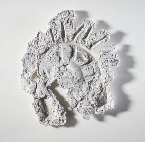 Working from imprints, Helene Mc Nicoll creates mural sculpture with discarded cotton textile fibers and other plant fibers. She is making her debut at Artist Project. Her intriguing artifacts bear witness to current conjunctions between plants, animals and the products of human industry. They leave quasi-archaeological traces. Struggle but collaboration, invasion and cohabitation; the urban and the suburban present, in a concentrated way, the inescapable amalgam of everything that tries to live. Former co-owner of the Canyon Sainte-Anne nature park near Quebec City, Hélène Mc Nicoll fought long and hard to have the canyon's banks classified as a “conservation area”; her artistic work stems from this struggle. Her favorite areas of observation are city centers and suburbs, which now constitute the intersection zones where most humans perceive part of the entanglement existing between themselves and other living beings. In 2024, she completed her bachelor's degree in visual arts at Laval University after spending part of her studies in France. Hélène is a member of Engramme, an artist-run center specialized in printmaking.
