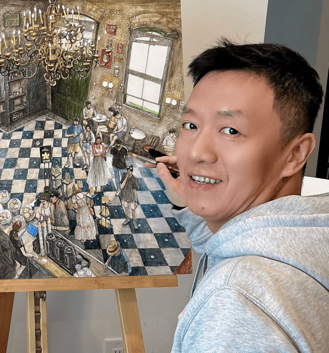 Meet Henry Hao, a Toronto-based painter and watercolor illustrator whose work captures the warmth and poetry of urban life. His Toronto Charm series reflects everyday moments through a personal lens. A full-time artist since 2022, he has exhibited at the Toronto Outdoor Art Fair and Artist Project. In 2023, his work entered Toronto’s Public Art Collection.