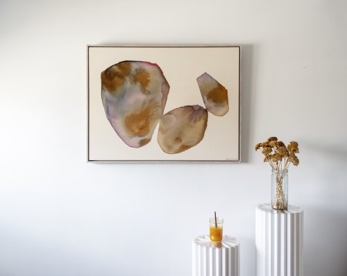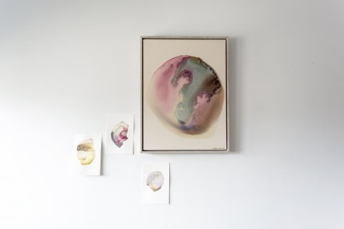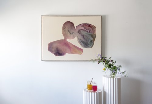 Earmarking the residue of daily life, Jilly Frances recognizes the ever-changing nature of time and light, reflecting back to us moments that are both present and fleeting. Capturing transience in the form of nuanced portraiture, the work strives to imbue ephemera with a sense of permanence. Featuring her Ground series, inks are made using natural materials from the street or soil, revealing themselves self-reflectively, as living colour. Plant matter and daily debris in passing are dripped onto cotton, staining a portrait of colour itself that remains very much alive, carrying its memory past its time.
