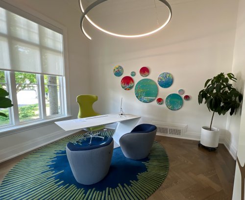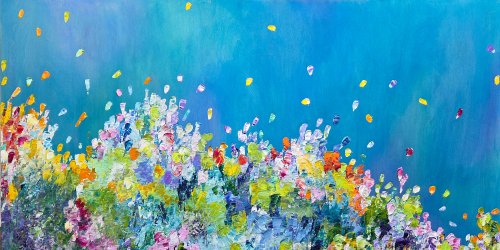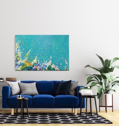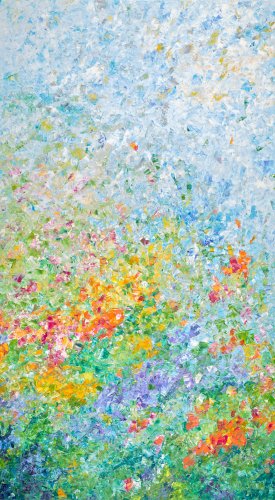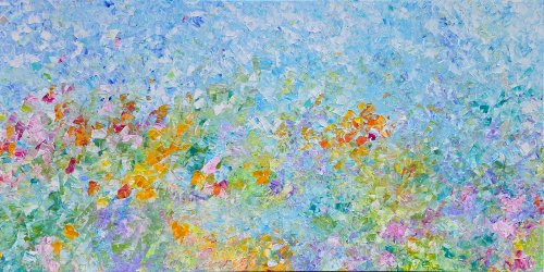 My art is a joyful interpretation of nature. Inspiration often comes to me at the cottage; the feeling of grounded calm & dynamic movement that happens so beautifully in nature.…positive & negative, energy & calm, push & pull of the Lake. I create with those seemingly opposing energies always in my mind’s eye.