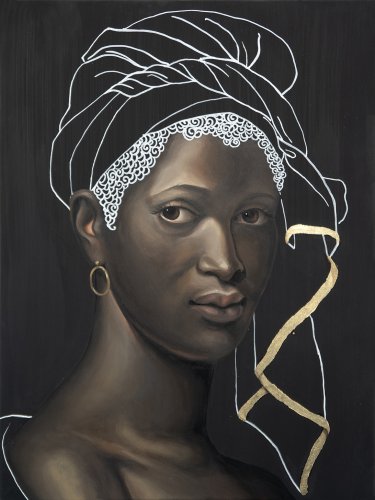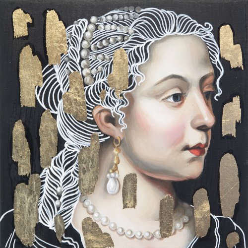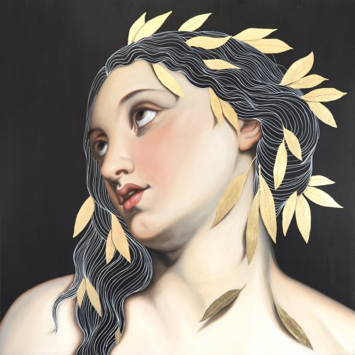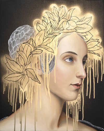 Daphne, acrylic, gold leaf and paint marker on wood panel, 24x24