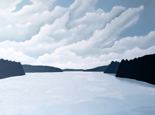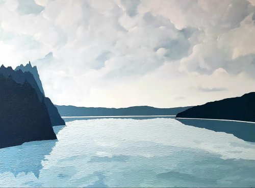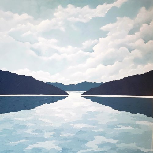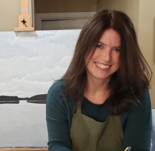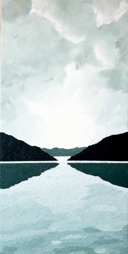 Lori Fonger is a self-taught artist from Toronto, Ontario. After a long, successful career in the corporate marketing world where she worked in the financial services sector for over 20 years, she is now creating art full-time. She is inspired by the peacefulness of nature, particularly water and tries to evoke that same sense of calm and serenity in her work. To that end, she leverages monochromatic colour palettes in muted tones and simplified compositions in hopes to give viewers a respite from the stresses of everyday life. Her work also combines soft flowy brush strokes alongside thick impasto painting.