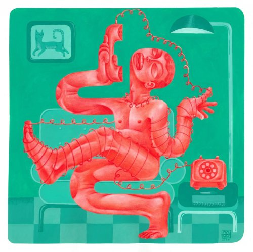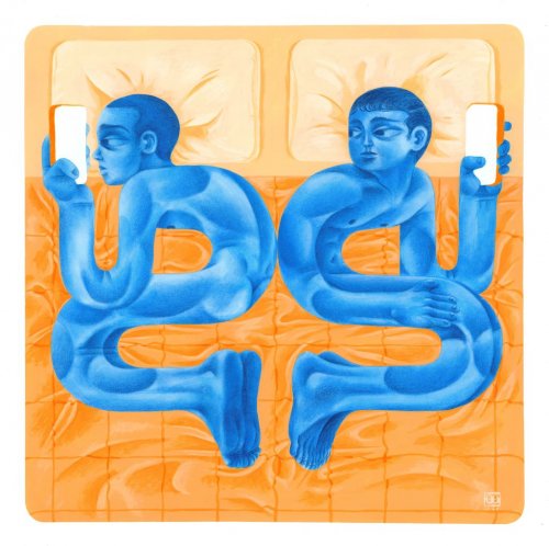Matthew Walton is a Toronto-based artist. His mixed-media work on paper highlights the quiet charm of everyday queerness, reimagining mundane moments through a vibrant technicolour lens. Walton’s vignettes invite viewers into intimate, relatable scenes that blur the line between “public” and “private" space, and it is within this liminal realm that his Cubist-coded figures live, uninhibited.