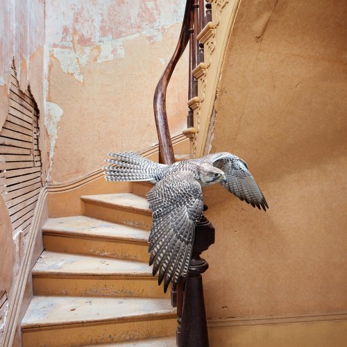Maureen O'Connor is a fine art photographer living in Toronto and is a graduate of OCAD. Maureen is a life-long animal lover and these photographs are produced with the cooperation of local sanctuaries, many of these animals are rescues from fur farms and others are non-releasable wildlife. O'Connor's photographs are produced with the cooperation of sanctuaries, many of these animals are non-releasable wildlife. The animals in these images were photographed onsite in the location in the photos. By photographing Canadian animals in abandoned domestic architecture, O’Connor raises questions about how nature and the built environment intersect. She sees these spaces as transformative, evoking memory and showing the fragility of the animals and the architecture. We are invited to cross the threshold and imagine new narratives where the natural world and the domestic world meet, and consider how this informs our identity in a country defined by both its wild landscape and its orderly cities.