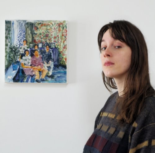 Michaela Lucio is a visual artist, curator, and arts administrator based in Chatham-Kent, Ontario. In her art practice, Lucio engages with identity and narrative; she explores the residue of histories contained in family photographs and infuses intergenerational relationships with memory and imagination. Her work often dives into the lived experiences of womanhood, utilizing mediums such as watercolour, embroidery, and fibre arts, mediums steeped with associations with femininity and feminism. Lucio began her role as Assistant Curator of the Thames Art Gallery in 2019. she holds a Specialist Honours Bachelor of Art from the University of Toronto and an Advanced Diploma in Art and Art History from Sheridan College, where she was awarded the prestigious Silver Metal Award upon graduating. She has exhibited her art in juried exhibitions at galleries across Southwestern Ontario, including The Living Art Centre (Mississauga), The First Canadian Place (Toronto), Gallery 1313 (Toronto), and Glenhryst Art Gallery (Brantford). In 2022 and 2024, she won first place at the WFCU Credit Union Painting Competition and Exhibition (Leamington Art Centre). In 2024, her work was included in Jackson’s Art Prize Longlist (Jackson Art Supplies), and she won Best in Show in Visual Elements 66 (Woodstock). For more information, please visit her website.