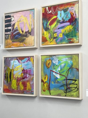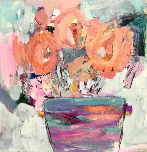 Hello, and welcome to my art. I create dynamic pieces rich in texture and spontaneity using acrylics, mark-making tools, layered papers, and collages. My studio is a chaotic mix of papers and notes—a vibrant space that serves as the foundation for my art. Each element contributes to my creative process, shaped by a series of 'I wonder what' and 'I wonder if' questions and a 'why not?' approach. My art celebrates curiosity and experimentation, inviting you to explore your stories through my distinct work. My paintings are alive with shapes and colors that dance across the surface, creating a poetry of movement and song. I embrace diversity in my work, from florals and landscapes to urban grunge and expressive abstracts that are honest, fearless, and always lead from the heart. My process involves layering paint, collage, and even more paint—creating layers rich with colors, shapes, and designs that are scraped, sanded, scratched, and dug into, revealing and leaving bits of the past. Every layer tells a story that blends history with the final design, resulting in a surface that is full of texture. The beauty lies in the discovery—the rich surfaces and hidden bits that can only be seen by getting close, exploring its secrets, and finding your own story within. I look forward to sharing my world of creativity and art, my journey of discovery, and the excitement of color, texture, and history. I hope to meet you at the Show, so please drop by and say hi. It is my greatest pleasure to share my art and passion for creating. My art can be found at the Petroff Gallery in Toronto, the Mountainside Gallery in Collingwood, the Westland Gallery in London, the Maud Gallery in Edmonton, and the PWD Gallery in Kitchener. Thanks for stopping by; I look forward to meeting you at the show.