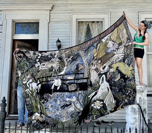 The visceral fragility of smashed eggs, the tension of red threads connecting lovers and mothers to children, and carnivalesque compositions of bird-women – Molly Bertheaud (born in NYC and living in Montreal) uses zoological symbolism and personal mythologies to explore the vulnerability of the heart’s expansion. She melds storytelling, myth, ecology, and mortality, to create narratives about love, desire, responsibility. She is currently pursuing her MFA at Concordia University. In 2023, she was selected for Artch and the residency program at Atelier 43. The McClure Gallery offered her a solo exhibition in 2024.