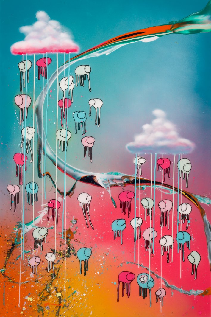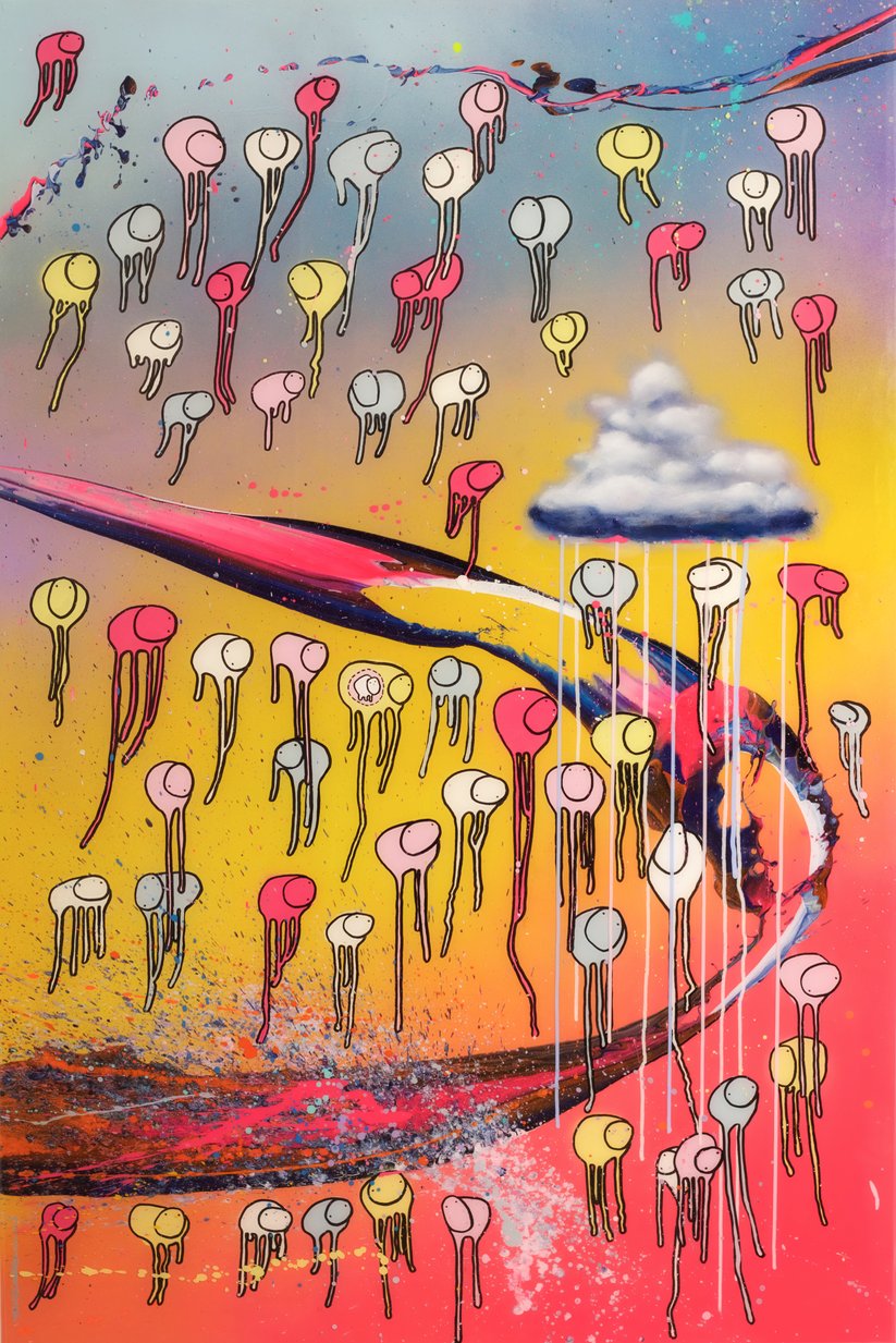 Morgan Sheardown, the visionary artist, born and raised in downtown Toronto. transcends fine art and design. A graduate of OCAD University in Graphic Design, his artistic vision illuminates a wealth of possibilities that extend beyond the canvas. Recognizing the potential of his work to venture into new realms, he embodied his love of illustration, painting, and graphic design into new interdisciplinary forms. Morgan's body of work entitled "Raining Cows", expresses the inspiration he gets from rain, colour and his appreciation of cows. He uses rain as a filter to distort and create different levels of abstraction. The cows are graphic however, his work is painted on layers to the feeling of rain. One can actually see the layers and splashes of rain creating a 3D like floating effect. The colours, the clouds, the rain and the graphic application all come together to create a happy and calming effect. In these stressful and turbulent times, Morgan wants "Raining Cows", to make people happy and to make them smile. However, Morgan also looks to “Raining Cows"as his symbol of triumph, withstanding the storms of his life. The widespread popularity of Morgan's work has been translated into fashion, interior design, and the latest revolution of the art world, NFT’s. Morgan's work has been featured in publications including The Toronto Star, The Toronto Sun, Global News, The National Post, The Globe and Mail, and The Montreal Gazette. His work has been exhibited and partnered with Samsung, Steam Whistle, TELUS Brain Project, blogTO, and TIFF Gallery of the Toronto Film Festival. Alongside of having his artworks collected internationally, Morgan’s fashion collection has appeared on the runway of Toronto’s Fashion Week. Morgan works out of his studio in downtown Toronto.