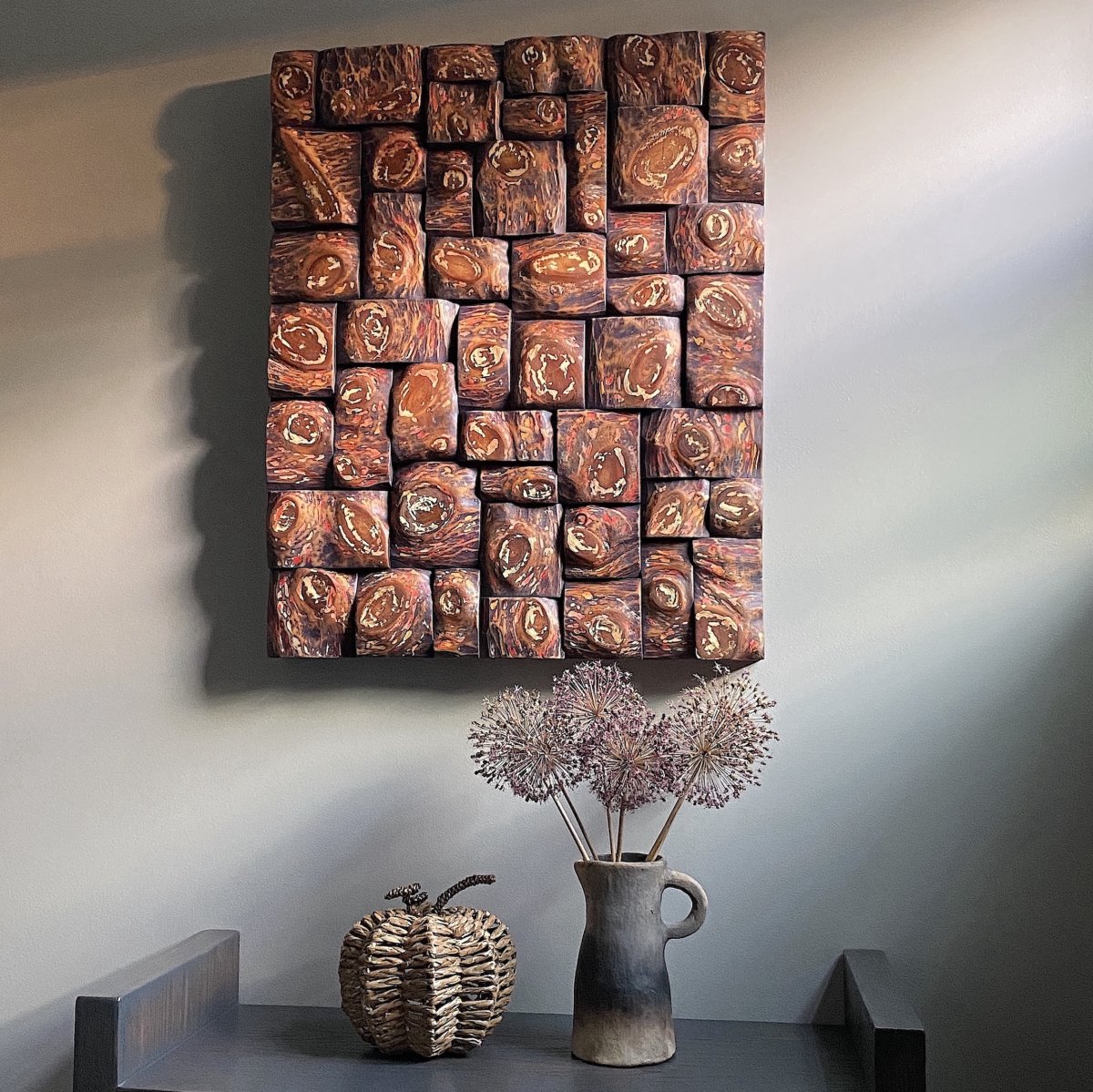 Art that you can see, feel... and hear. My sculptural wood wall pieces are not only about form, texture, and the natural beauty of the wood - they also transform the way a space sounds. Each piece is shaped and carved to scatter echoes, soften sharp acoustics, and create a place that feels calmer, warmer, more intimate. I love working with wood because it holds both strength and softness - structure and rhythm. At the fair, you'll be able to experience the texture up close and may be even notice how the space feels different around it. See you at my Booth!