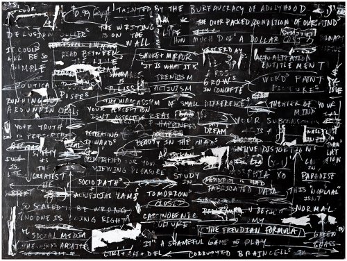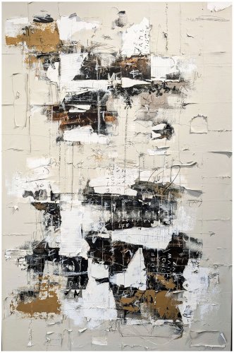 Patrick Skals is an award-winning artist from Toronto. His paintings are intended to have one rethink and challenge mass cultural perspectives. By tackling psychocultural topics around contemporary culture and its impact on our mental health, one is asked to approach the subjects with honest introspection. Inspired by the beautiful decay of city walls, paper is utilized to create an impactful textual element. Applying pages from Psychology textbooks aligned to the intended message, the audience is primed to engage in meaningful discourse. Revealed throughout his works is the signature equation (x-1)?/xo. Using a denominator xo symbolizing love, and placing it in a mathematical equation (math being stereotypically difficult) it challenges the notion of self love versus the unconditional love we show others. Authenticity is at the heart of each painting, feeling as impulsive as they do calculated. The audience is invited to relate to the vulnerability of an artist battling themself in a rapidly changing environment. Patrick’s work can be found at juried shows, commercial galleries, and private collections throughout North America, Europe and Asia.
