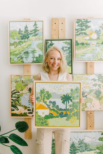 Sabina's art is a reflection of her appreciation for peaceful and tranquil moments, pulling inspiration from the natural world around her. With oil paints and cold wax being her preferred medium, her paintings retain flowing and gentle marks, vibrant colours and quiet scenes. Her work brings a breath of fresh air and a pop of colour to the modern home.