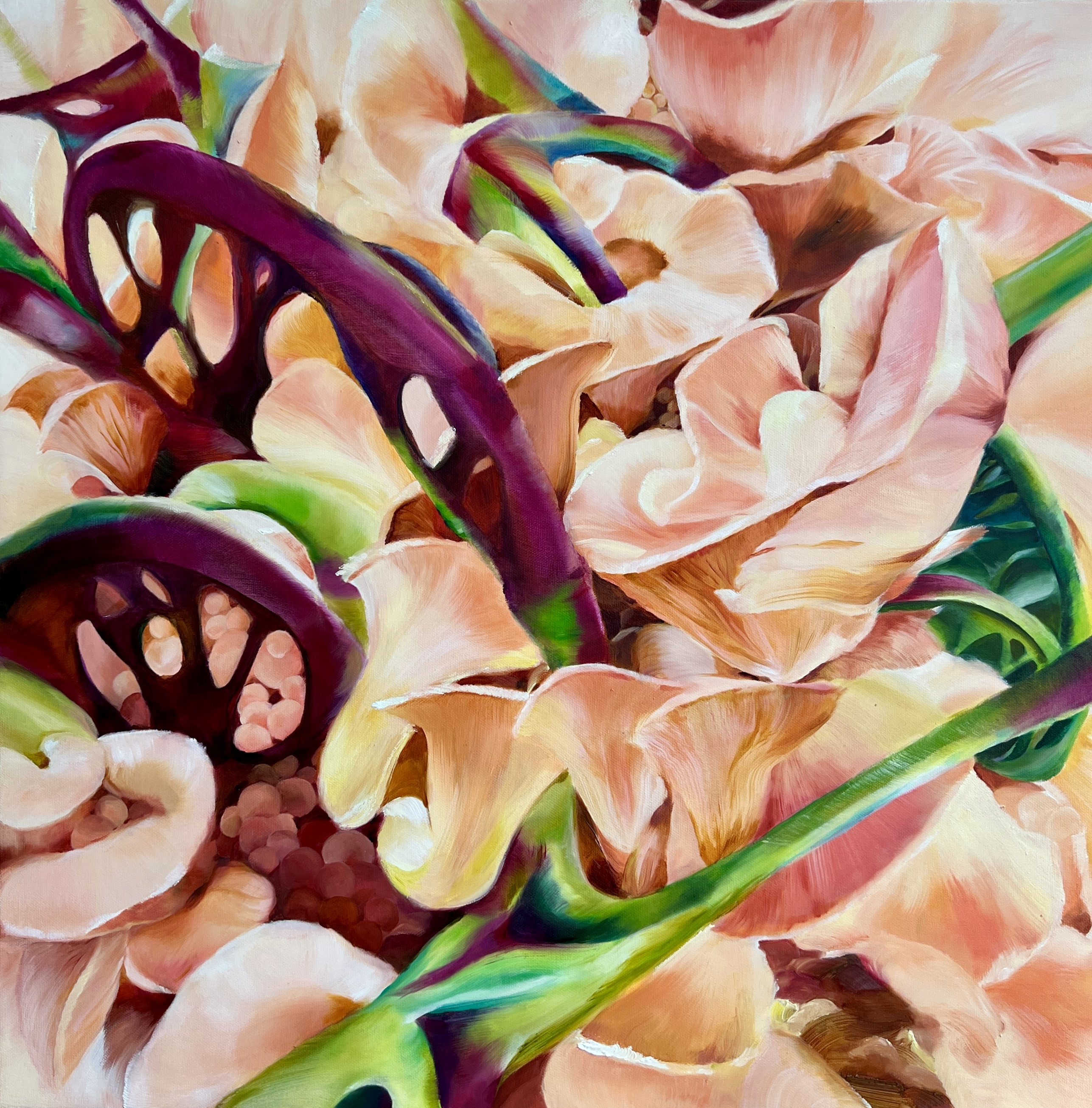 Sophia Kyungwon Kim is a Toronto-based visual artist currently pursuing her MFA at OCAD University, where she also earned her BFA in Drawing and Painting. Working across painting, textile-based sculpture, and sculptural installation, her practice engages material relationships, lived experience, and everyday systems of care. Informed by her background as a former police officer in Korea and her life as an immigrant and mother of four, Kim transforms ordinary materials and gestures into forms that reflect interconnection, resilience, and quiet persistence. She participated in the Florence Biennale (2025) and has exhibited in numerous group exhibitions in Canada and internationally.