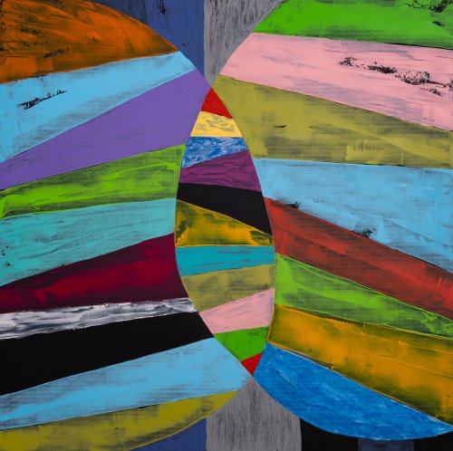 Stan Olthuis is a Canadian multi-disciplinary visual artist currently based in Nogojiwanong/Peterborough. His work is driven by an ongoing curiosity of the relationship to the world around us. Often reinterpreting persistent symbolisms such as sacred geometry, Olthuis explores spatial tension and interaction through abstract shapes and audience provocations powered by a colourful palette. Concept and process drive the work. He employs diverse materials and fabrication techniques to make paintings, sculptures and interactive works that welcome the viewer’s involvement. There’s a joy in the rawness and immediacy.