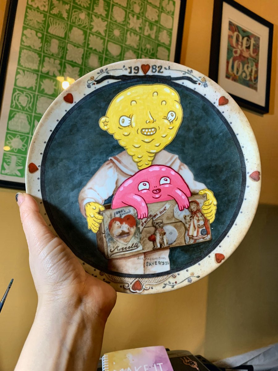 I love working with found objects, particularly objects that resonate within a pop-culture/mass-media lens, and remixing them into something quite absurd. Traditionally I've focused on advertisements, especially salvaged street-ads, but in preparing for this year's Artist Project I've broadened my subject matter to include more of the detritus of consumer culture. I alter the text and paint or sculpt my own additions onto items that are thrifted, from the dollar store, or curb-scored. My work is a response to our growing collective sense of loneliness and disconnect, and the ease with which we can fill that void by accumulating stuff. In a world of meaningless consumption my art brings genuine joy, transforming these once-forgettable objects into the ultimate act of reclamation, rebellion and resilience.