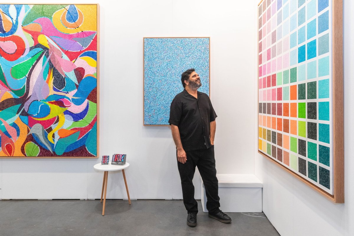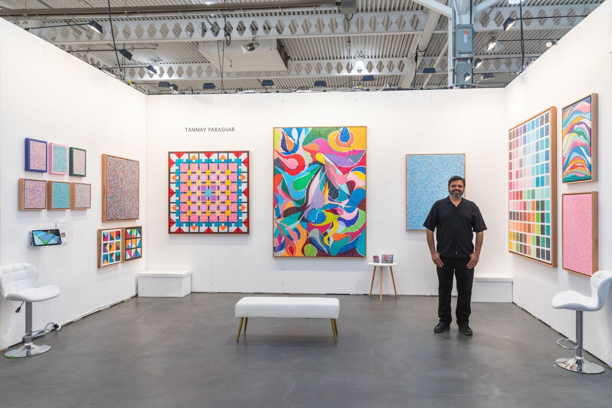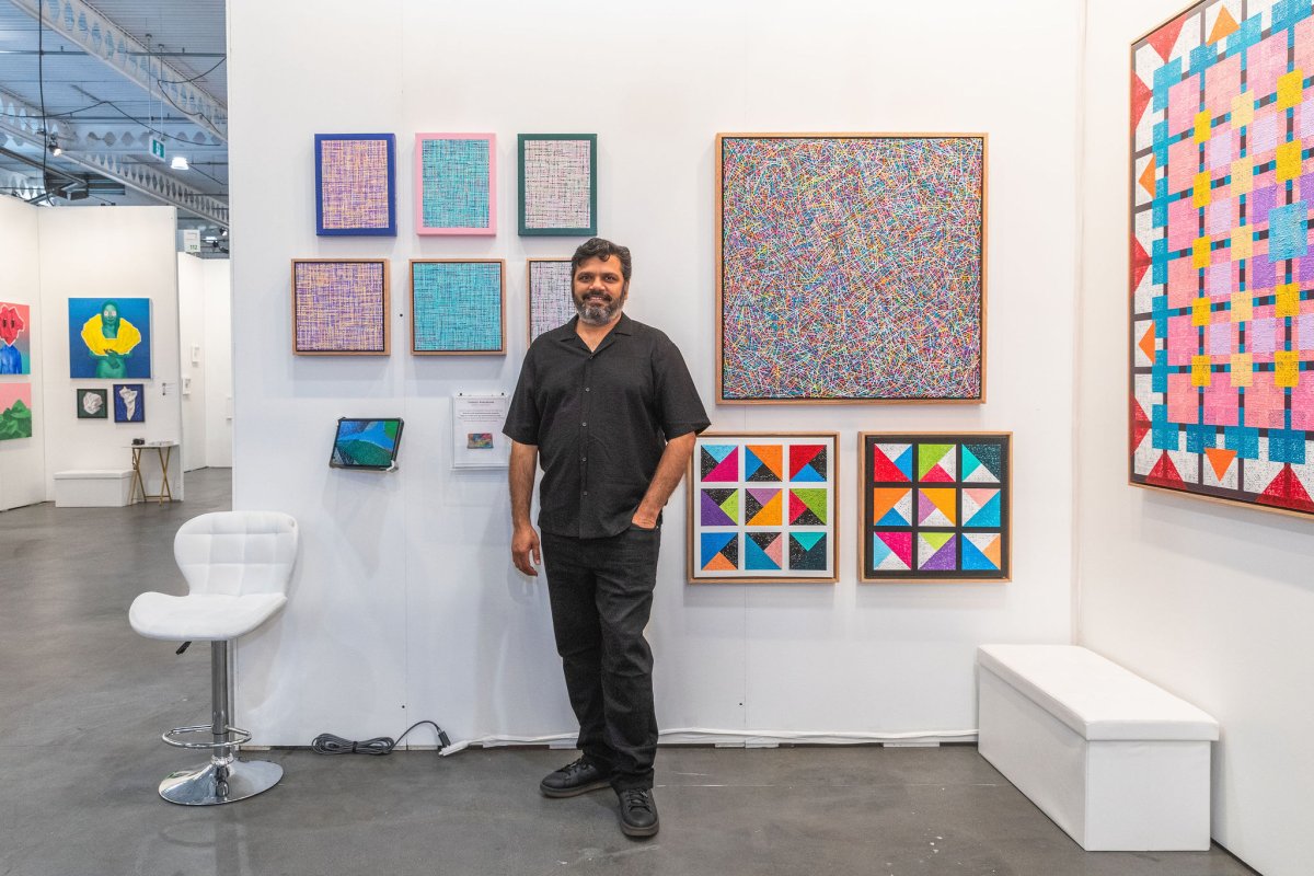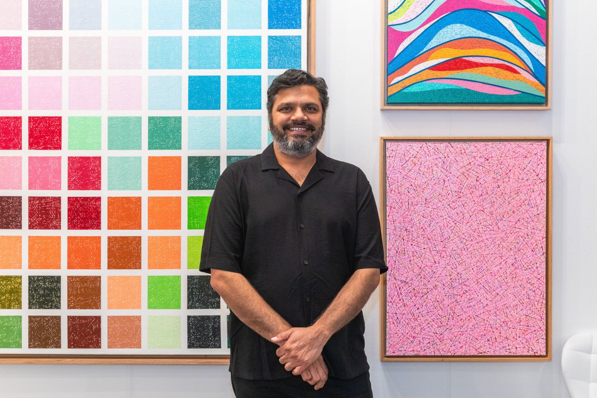 I'm a London, Ontario based abstract expressionist, passionately in love with colours. I try to evoke a sense of beauty & inspiration through the interactions between colours as they find their place on the surface I'm working with. I endeavor to create pieces that produce the same passion for colours in others that I have always felt. My style is the evocation of emotion through the interweaving of colours on canvas and aims to be to the eyes what enthralling music is to our ears. For me, my style is not the brush stroke or application technique of medium on canvas. It is the way that I use colour to express myself and the expression of my sense of self is imbued in my aesthetic. My aim is to evoke inspiration and strong emotional experiences through the use of the interplay between colour and form on canvas. A distinct aspect of my practice is my use of a credit card. All lines on all my pieces are made using the edge of a credit card, one colored dab at a time. These pieces can have up to 60,000 individual dabs and can take a few weeks to complete.