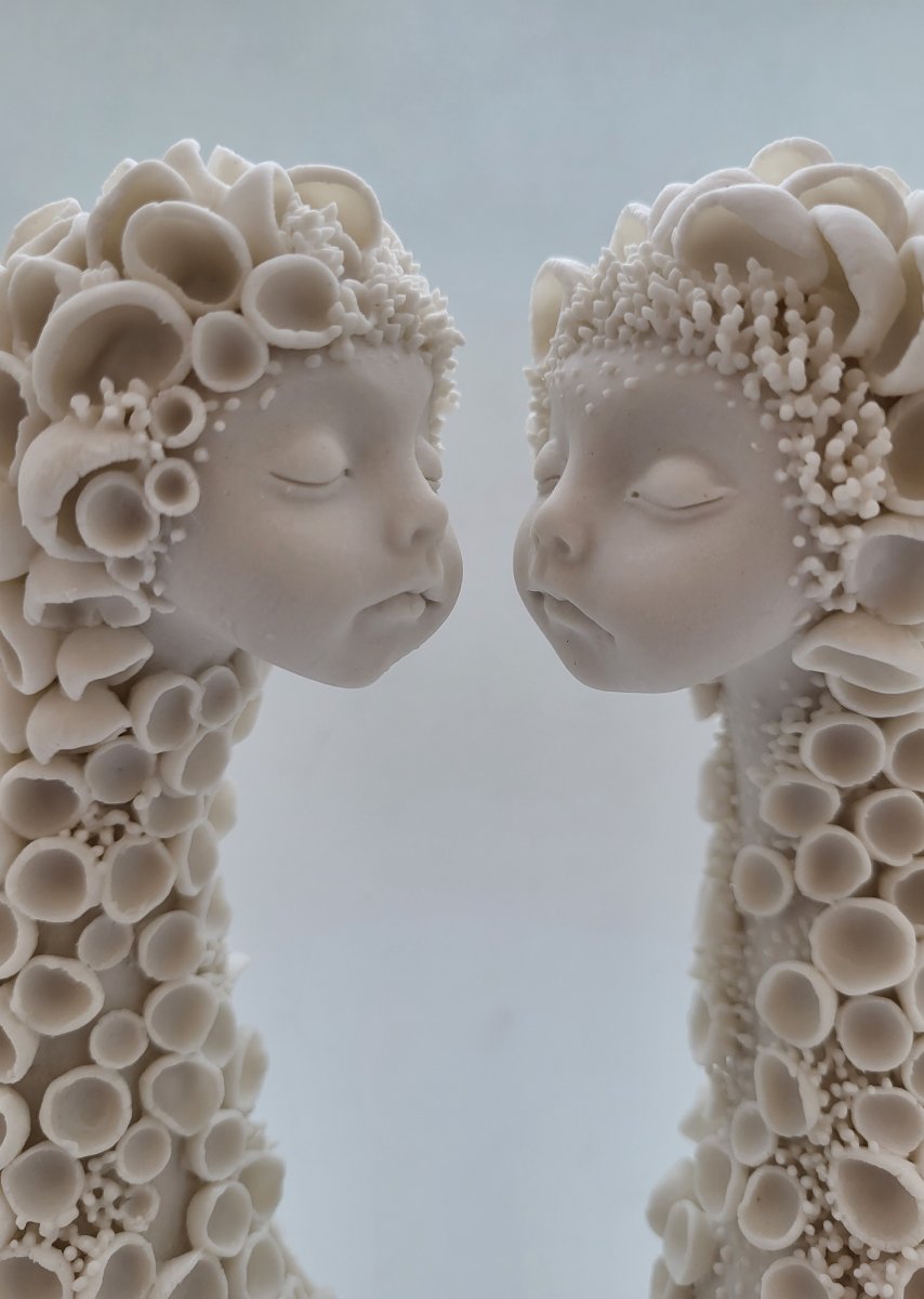 Tanya Besedina is a Latvian-Ukrainian-Canadian sculptor based in Toronto, working primarily in translucent porcelain. Her practice explores transformation, memory, and the sacred feminine through tactile forms that embody both fragility and resilience. Originally trained as a fashion designer in Ukraine, she discovered her true medium in clay—a material she describes as both fragile and eternal. Drawing from her heritage and experience of migration, she transforms personal and collective memory into symbolic, organic forms. Her current research explores Parian porcelain as both material and metaphor—connecting the luminous fragility of clay to contemporary questions of empathy, perception, and care. She is the 2025 recipient of the Craft Ontario Helen Copeland Memorial Award in Ceramics and winner of the Made with Laguna International Competition. This year, The Artist Project exhibition will be supported and granted by Ontario Arts Council and Laguna Clay company.