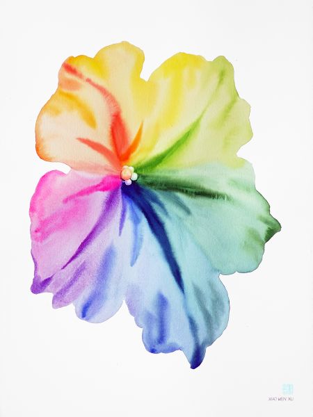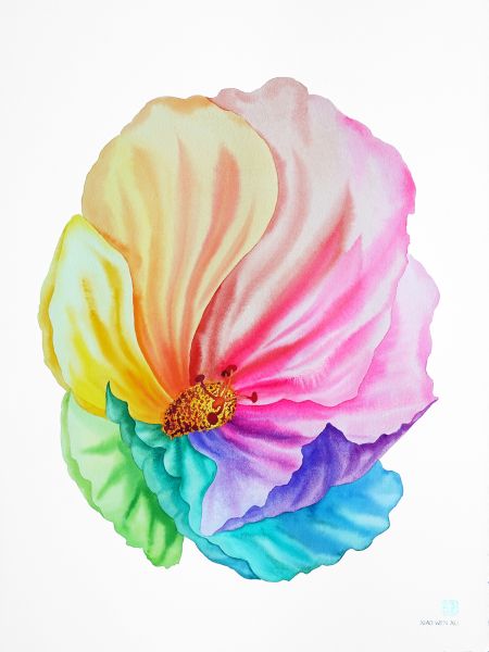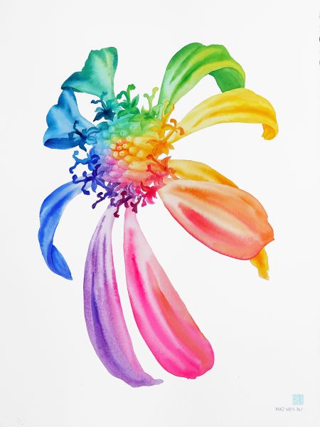 Xiao Wen Xu (b. 1991) is a Chinese-born Canadian artist in Toronto. She specializes in watercolour and mixed media painting and holds a Master of Architecture degree from the University of Waterloo (2018). Xiao Wen’s unique perspective is painting Canadian flora through Chinese painting methods, such as simplifying forms and leaving negative space. Her artistic practice is influenced and inspired by her love of nature and colour. She depicts the shape of flowers, leaves, and landscapes realistically while using fluid and bold imaginary colours. Her paintings create a surreal and fantastical world that bridges and encourages conversations with Canadian reality and her Chinese roots. She has presented her work in solo shows in Toronto and group shows in Hamilton, Los Angeles, and New York City.