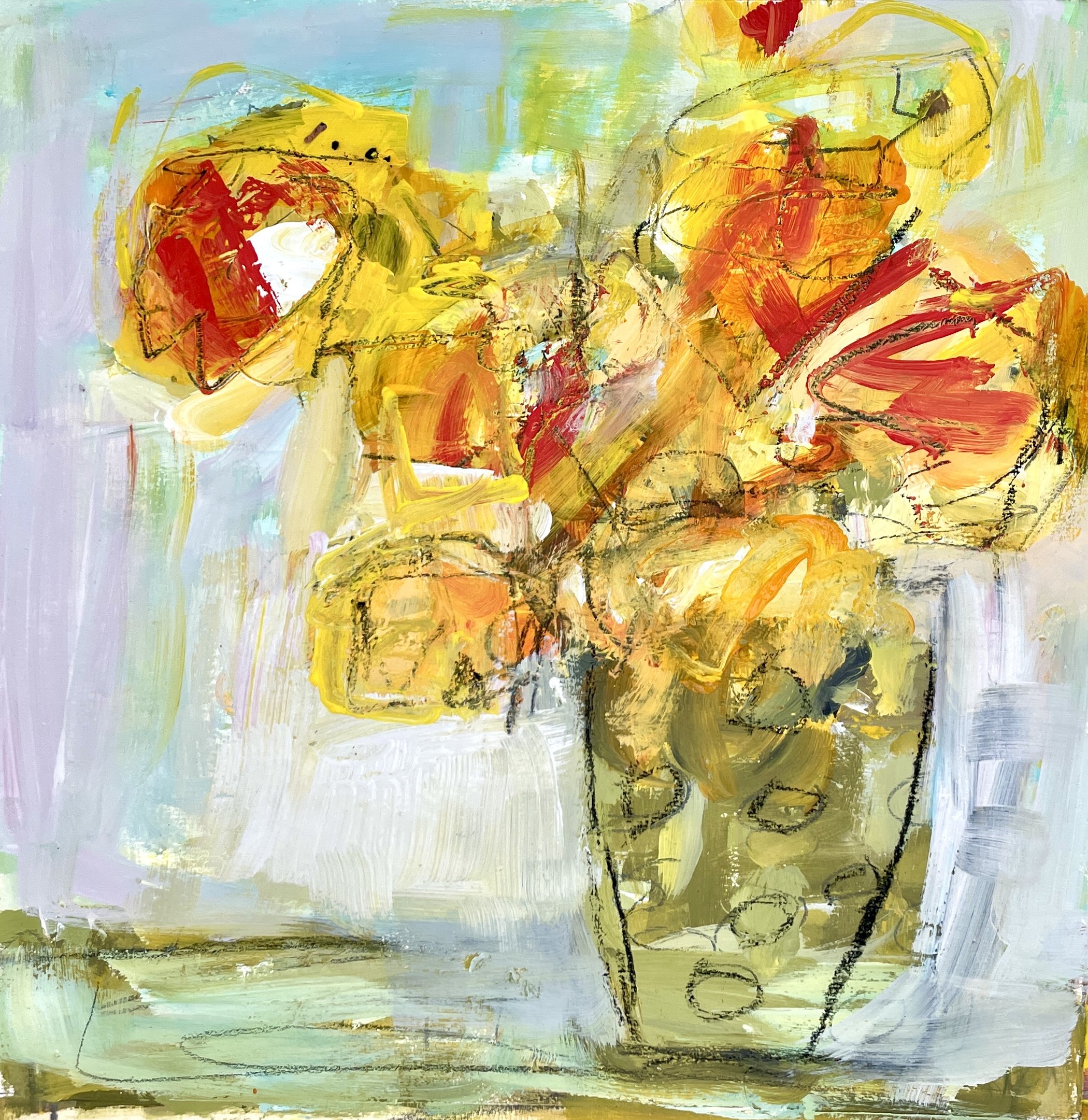 Colour that speaks. Marks, shapes, and texture used as words with lots to say. The work grows through movement and instinct—layered, disrupted, and rebuilt—guided by curiosity and a willingness to follow what unfolds. Papers, scratches, bold shifts of colour… and always something unexpected, somewhere. Each decision leaves a trace. Nothing is overplanned. Everything is felt. It’s a conversation with the surface—one that builds, unravels, and finds its way forward. Each mark is a decision. Each layer a moment that refused to be ignored. Each painting moves with colour and rhythm—alive with energy, carrying memory, and sharing the simple joy of living life with arms wide open. Created in my studio in London, Ontario. Art for people who don’t want ordinary walls. Yes—here it is, fully woven together, clean, alive, and ready to use: --- This collection lives in the space between knowing and not knowing. Each painting begins with a mark, a feeling, a moment—and then asks to be followed. There is no fixed outcome. Just a willingness to stay, to respond, to take one step, and then another. Some works move quickly, full of colour and energy. Others slow down, pause, and wait. The surface holds it all—movement, hesitation, return. Nothing is erased. Everything is carried forward. Layers build through instinct—papers, marks, shifts, interruptions—found pieces arriving and settling in, each one finding its place where the spirit of the work lies. There are detours. Unexpected turns. Moments where the work moves in a direction that wasn’t planned but feels necessary. Decisions are made in response to what’s already there, not in search of perfection, but in pursuit of something real. This is a collection about trust. About letting go of control and listening closely enough to hear what the work is asking for. About staying in the process long enough for something unexpected to emerge—and being willing to follow it. And somewhere along the way, the titles appear too—small sparks of language, catching the moment, pointing back to where its spirit lies. Not all at once. Not all at the beginning. But step by step, mark by mark— through movement, pause, and detour— the work finds its way. And all I can hope is that through this work, you step a little closer to the moment—to remember, to trust, and to feel that spark, when life is full of surprises—alive, present, and fully becoming.